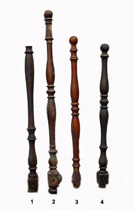 Geländerstäbe aus Holz, verschiedene Ausführungen, Durchmesser ca. 5-6 cm