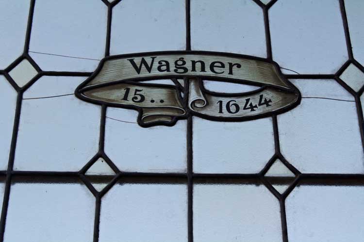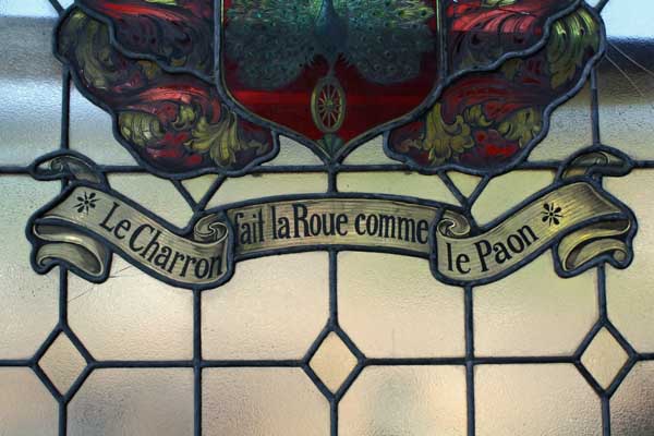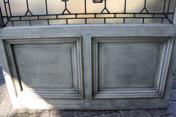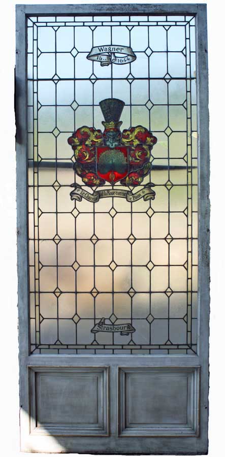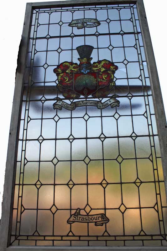 Großes Bleiglasfenster, Eiche, unten mit Holzfüllung, sehr schöne Arbeit, Motive s. Bilder