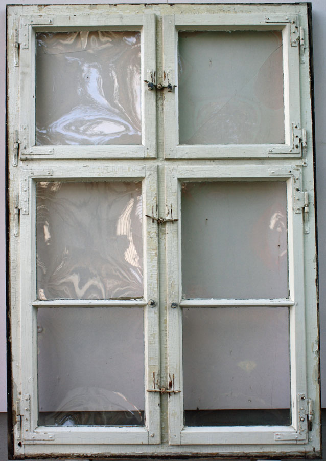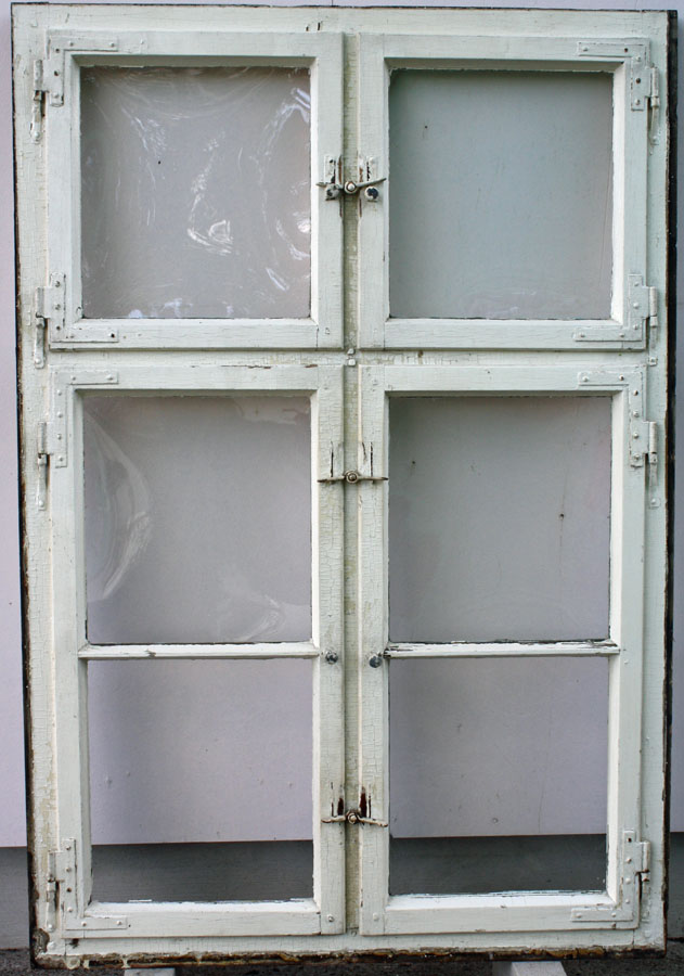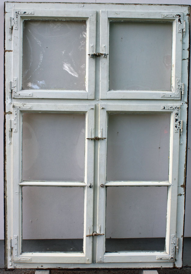 4 Flügel zum Öffnen, alte Beschläge, gewölbte Scheiben
