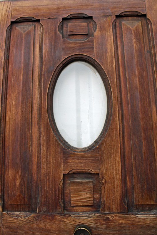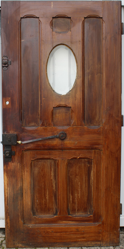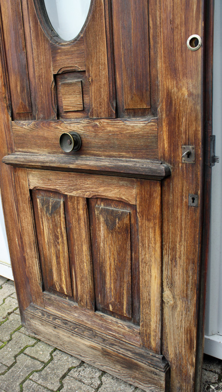 Haustür mit Lichtausschnitt und ovaler Verglasung, schön gearbeitete Holzfüllungen innen und aussen Oberfläche lackiert, guter Bergezustand