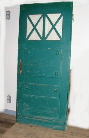 Haustür mit Glaseinsatz und Sprossen im oberen Bereich, 2 aufgesetzte Füllungen im unteren Bereich, Bergezustand,