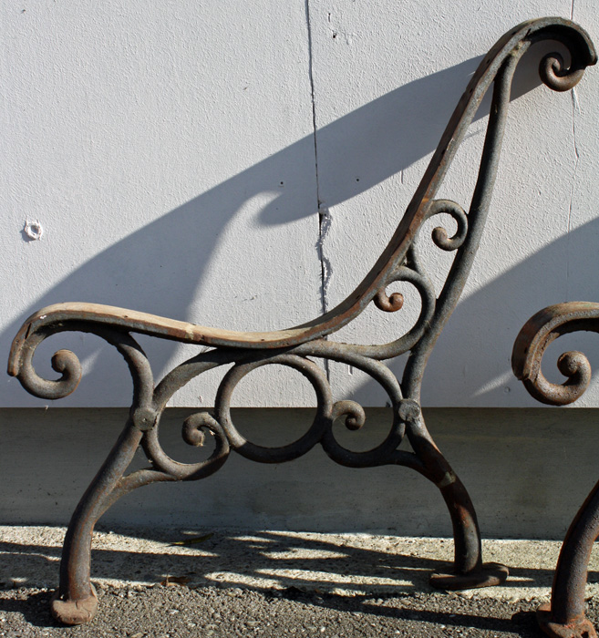 Alte Gartenbankteile aus Guss, 1 Paar vorhanden, Sitzhöhe ca. 40 cm, Gesamthöhe ca. 75 cm, Breite ca. 60 cm 1 Gestell wurde mal geschweißt, Stabilität ist vorhanden, Gestell wurde entlackt