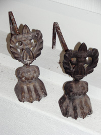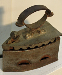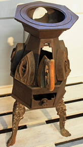 mit 8 Bügeleisen und 1 Holz-Handgriff, mit dem die Eisen