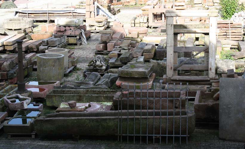 Auf einer Gesamtfläche von ca. 2000 m2 befindet sich neben dem Aussenlager auf dem Grundstück die alte "Dresche", in der wir das Material, das vor Witterungseinflüssen geschützt werden muß, lagern können.