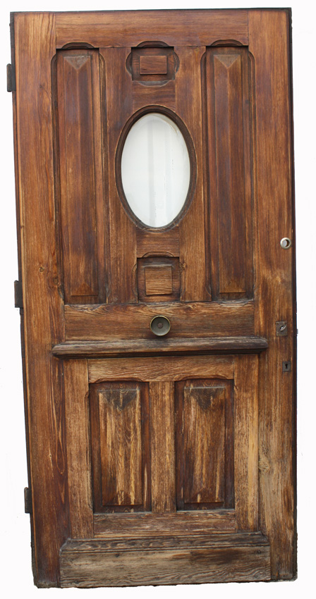 Haustür mit Lichtausschnitt und ovaler Verglasung, schön gearbeitete Holzfüllungen innen und aussen Oberfläche lackiert, guter Bergezustand