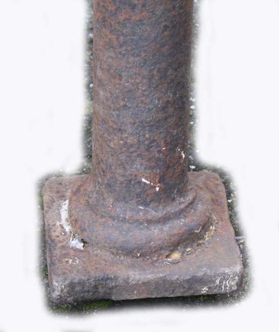 Stütze aus Stahlguss mit Kopf- und Fußplatte,Länge ca. 242 cm, Stützenkopf ca. 48 x 16 cm, Fußplatte ca. 18 x 18 cm, Stützendurchmesser ca. 9 cm cm