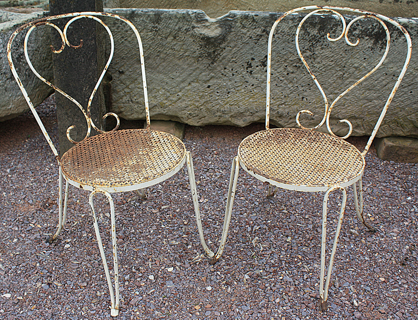 2 schöne filigrane Eisenstühle, passend dazu Tisch Art.-Nr. 265.300.13 (aus Frankreich)